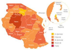 Civil and political rights scores in Tanzania by region (click image to view a larger version)